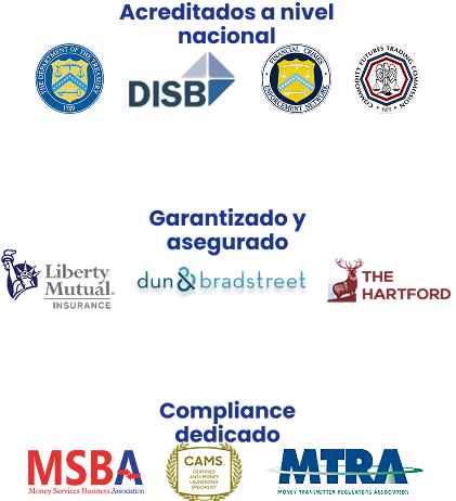 Gracias a nuestra alianza con Monex USA, trabajamos con licencias en todo el país, garantizando transacciones seguras contamos con un MSB registrado y autorizado. Tus fondos están completamente protegidos por una cobertura de seguros y fianza a través del Liberty Mutual, The Hartford, y el registro en Dun and Bradstreet.
